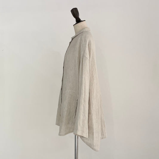 コットンリネンダブルガーゼ スタンドカラーブラウス