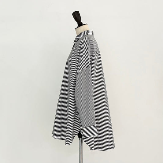 ポプリンストライプパッチワーク ドロップショルダーブラウス
