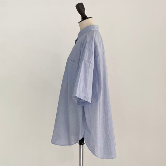 売り切れ80/1超長面ストライプ 5分袖ブラウス