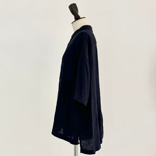 売り切れ60ベルギーリネン 胸ポケットブラウス