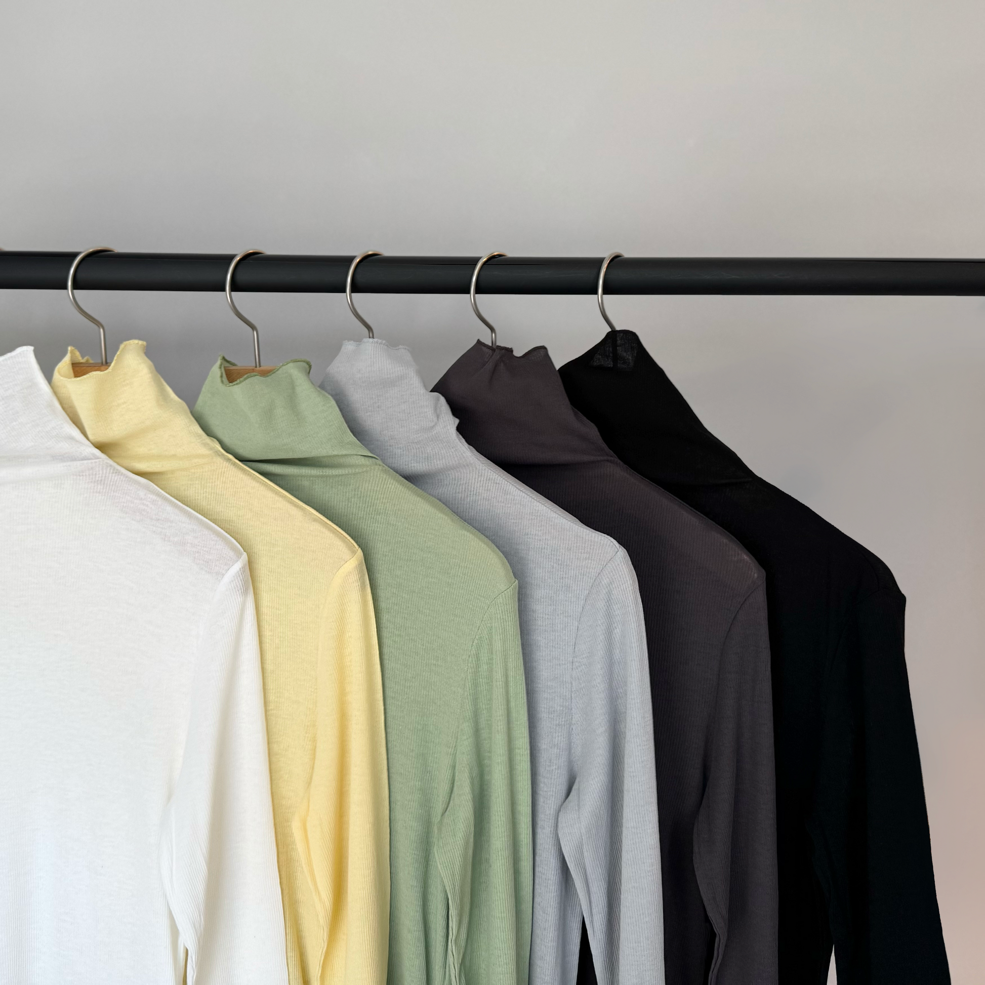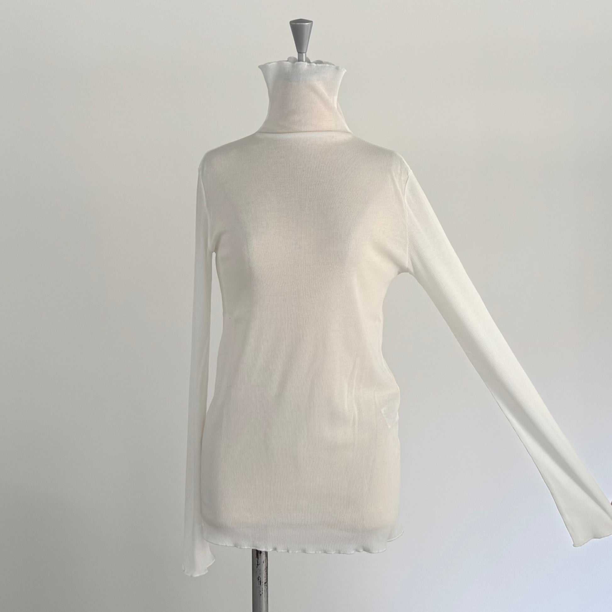 大人気のさらさらコットンテレコタートルネックが新色を交えて今年も登場!綿素材でサラサラな肌触り。首元や袖口のヒラヒラとしたデザインがアクセントになります。シアーな生地感と春らしいカラーリングで今から取り入れられる春物です。