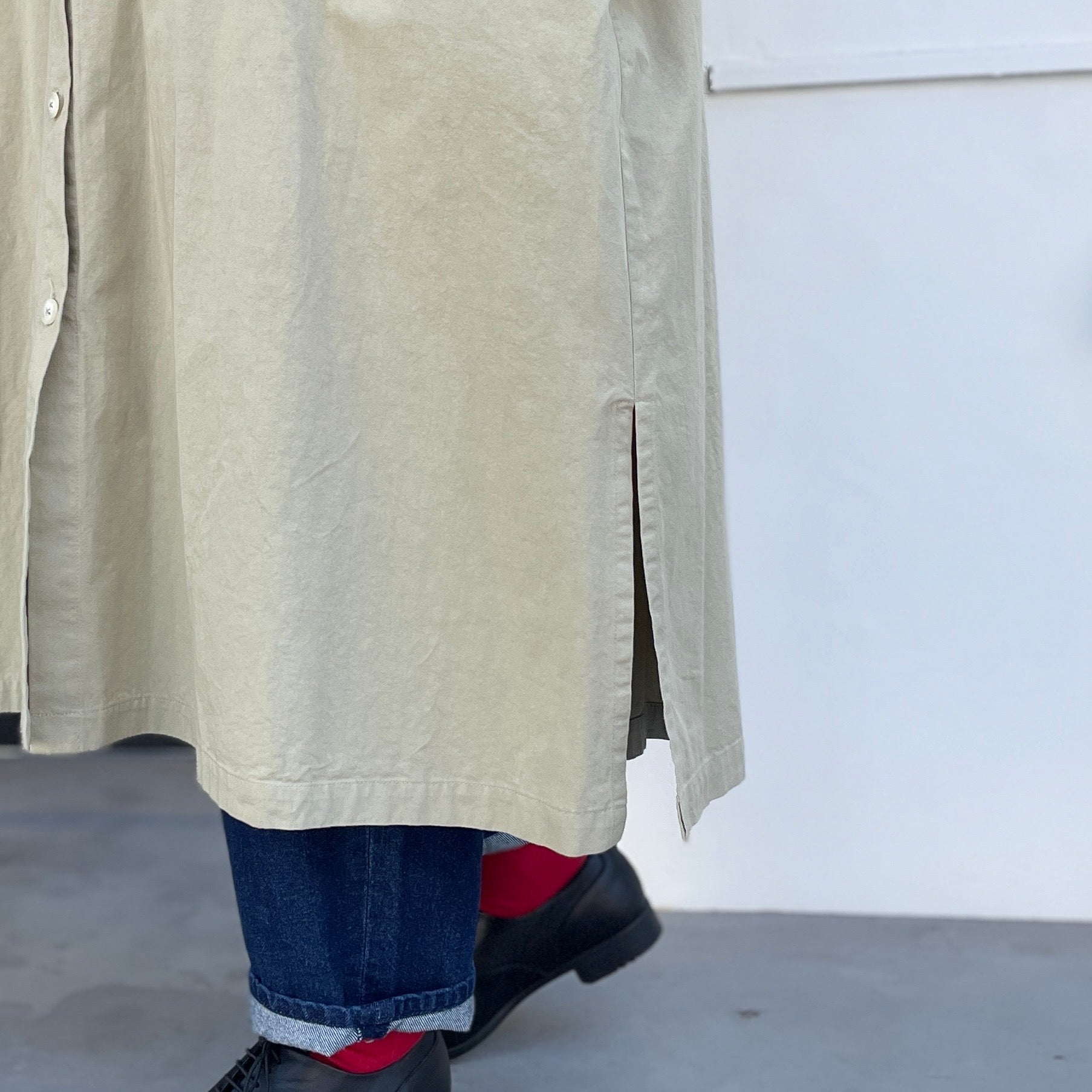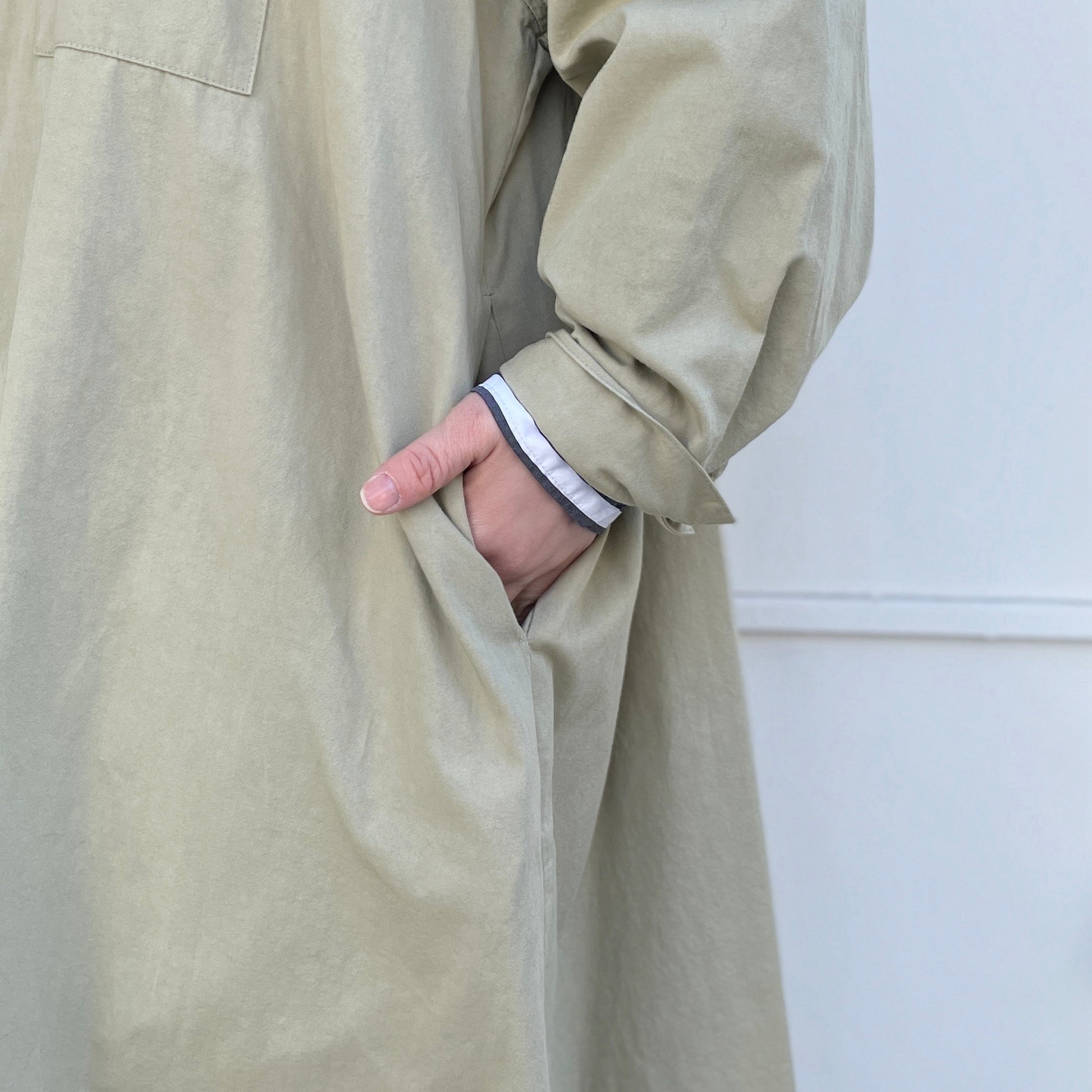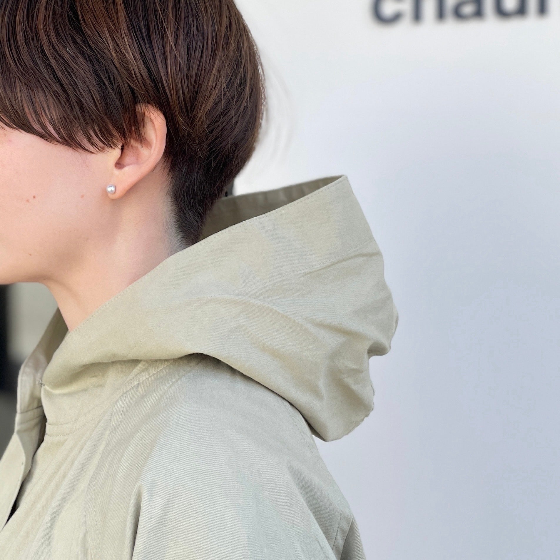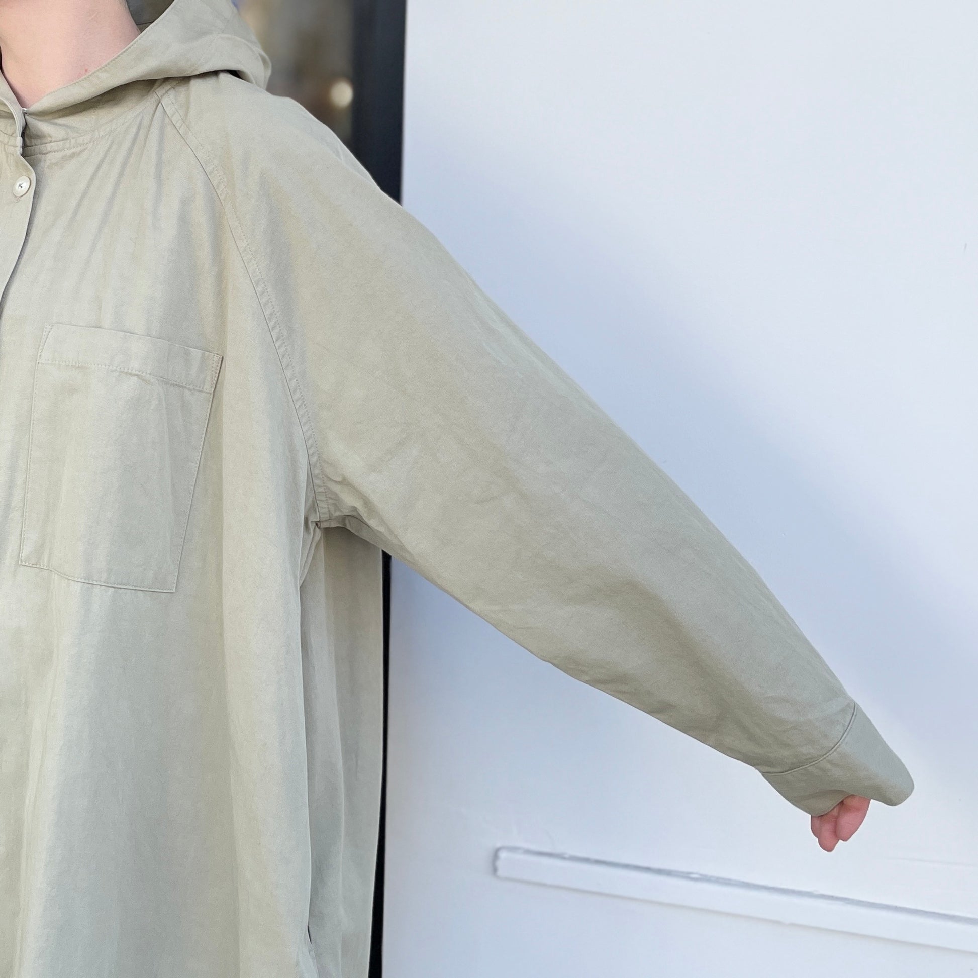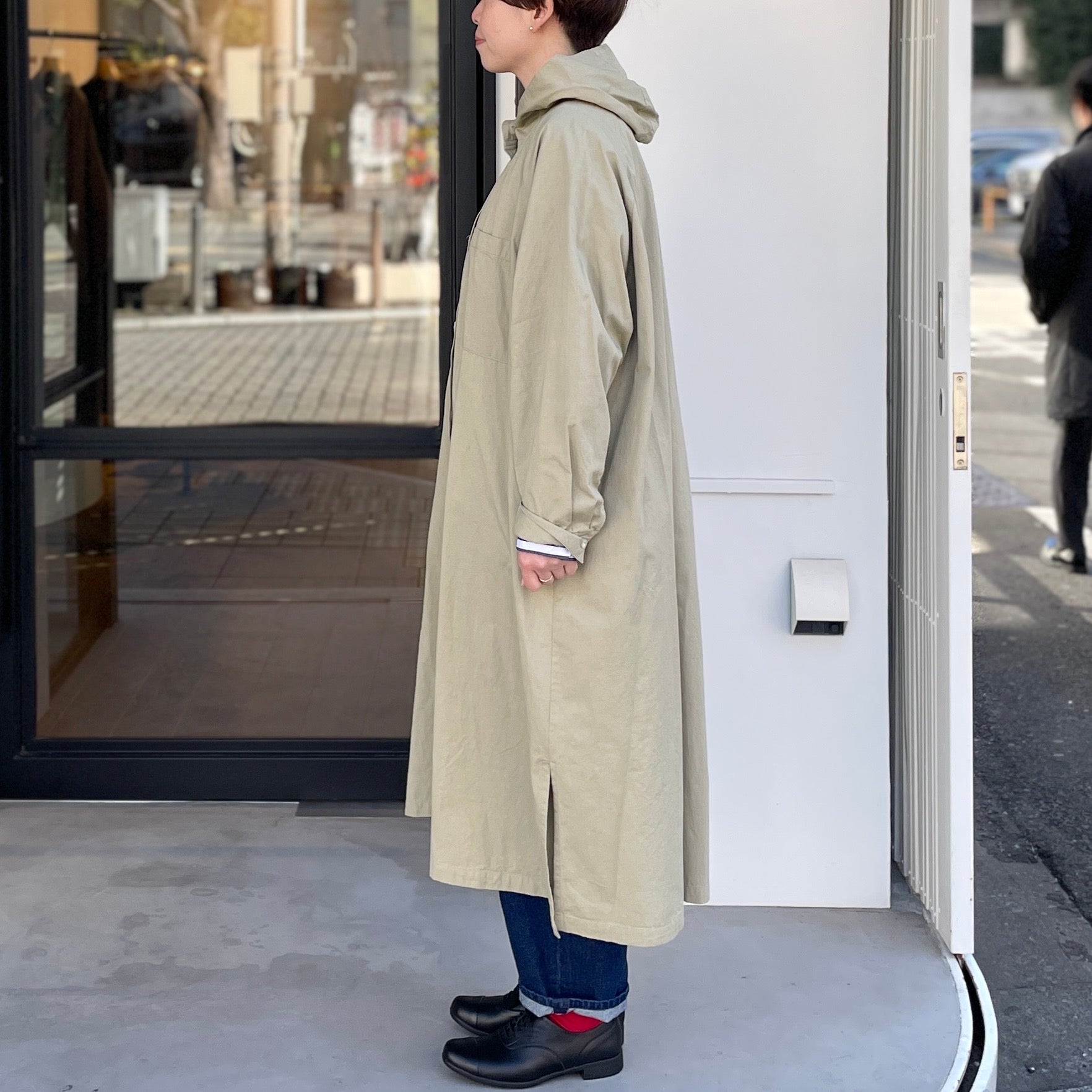 コットンの適度なハリ感と柔らかさのあるスプリングコート。ラグランスリーブで肩周りにゆとりがあり、厚手のニットやトレーナーの上に羽織っても嵩張りません。ボタン仕様で開けてロングシャツのように着れるのも〇しっかりと肩に自立してくれる小ぶりなフードや少し長めな着丈でこなれた雰囲気を出してくれます。