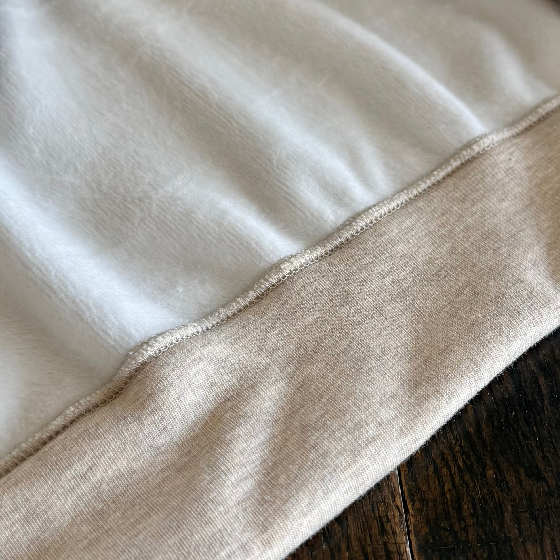 表地はもちっと肉厚でなめらかな生地、裏地はすっきりフワフワな暖か中起毛がやみつきです。ポケット付きでウォッシャブル。